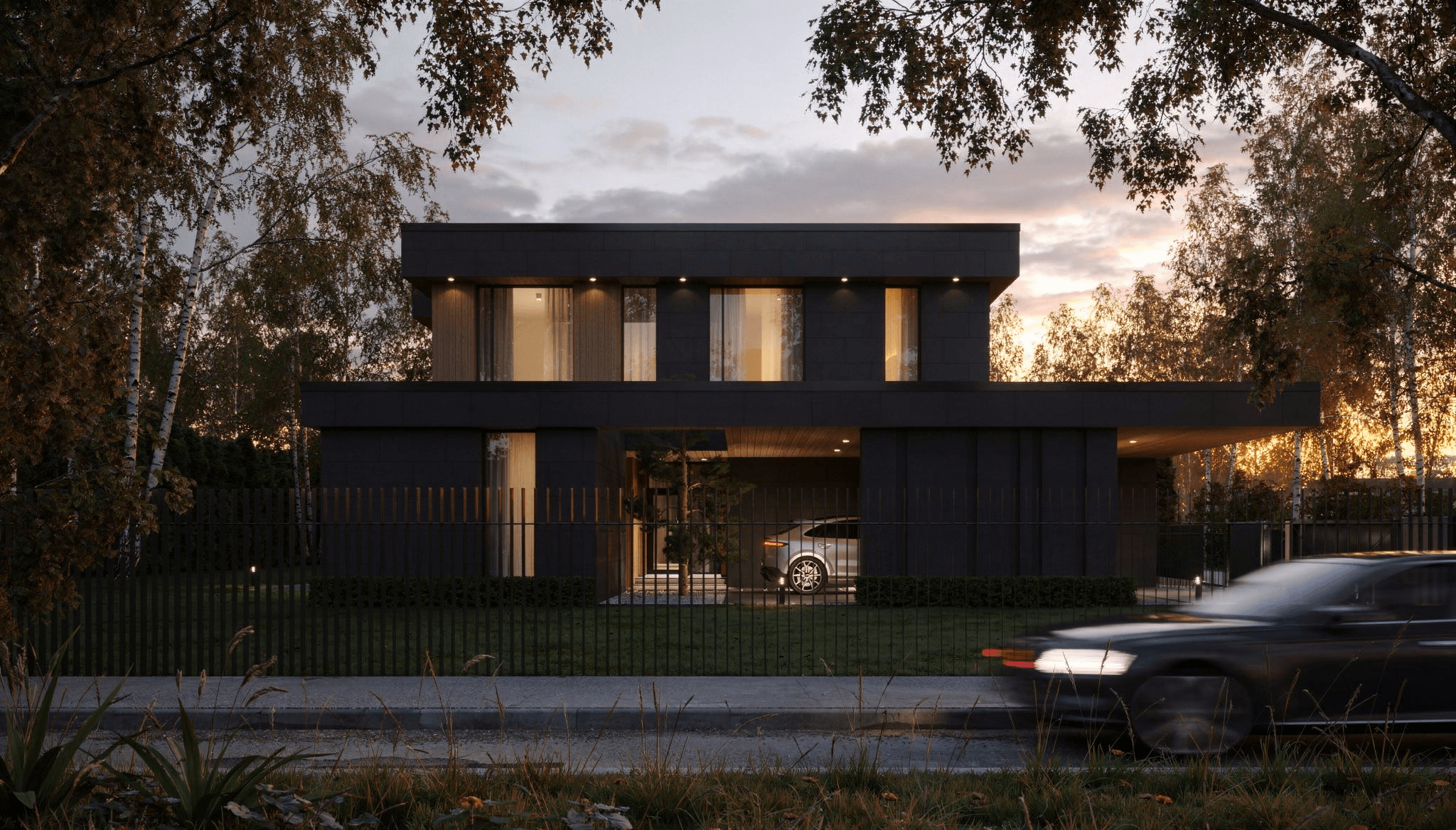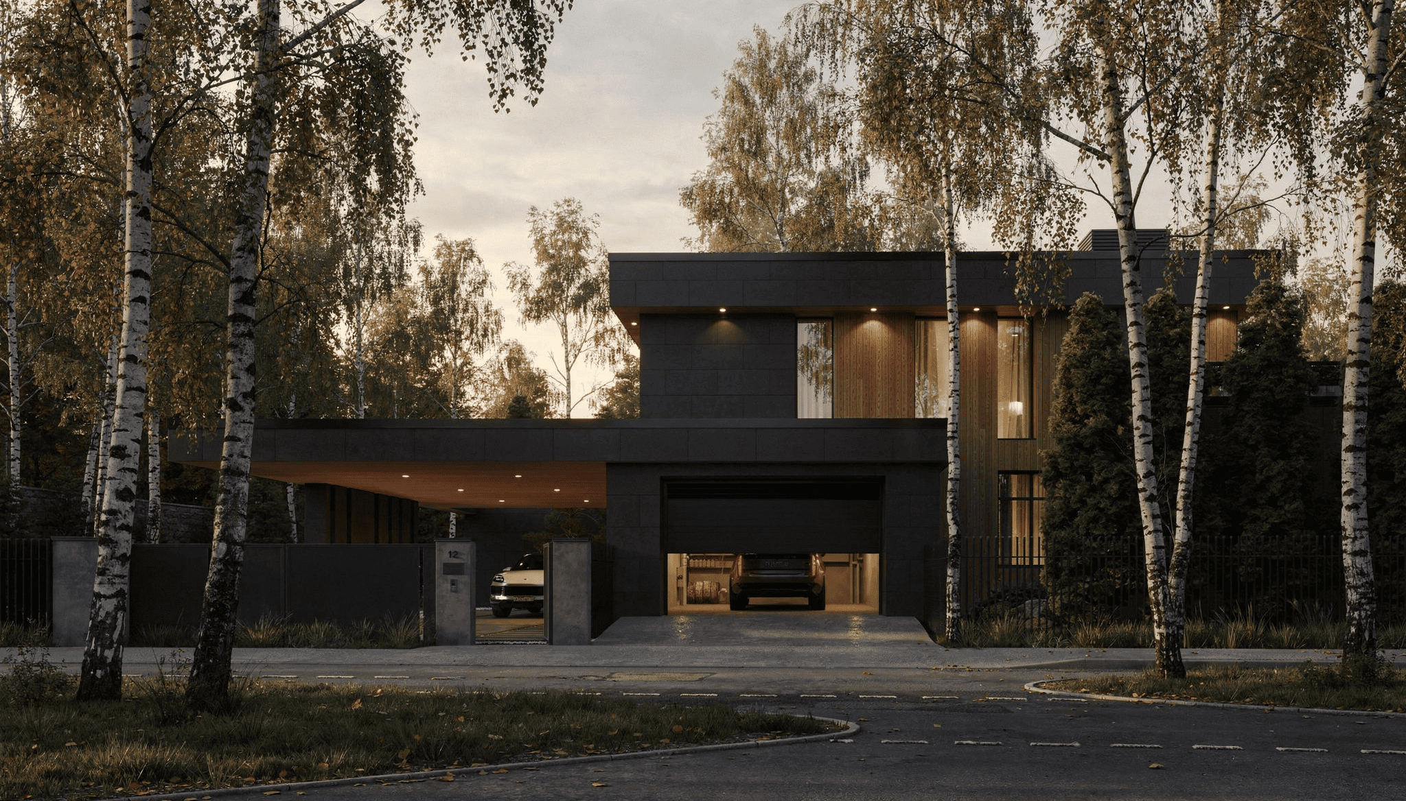 В поселке сохраняется традиция между соседями — быть ближе друг к другу и не строить высокие, монотонные заборы. Мы учли это, чтобы аккуратно интегрировать забор, въездную группу и дом.